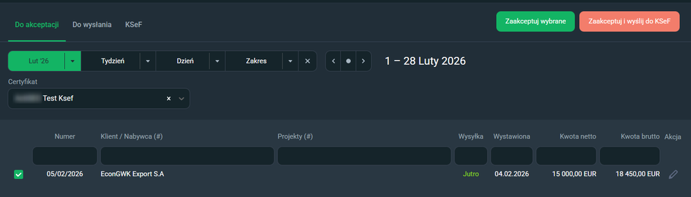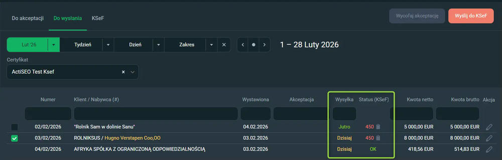 Odrębne widoki dla faktur wysyłanych do KSeF