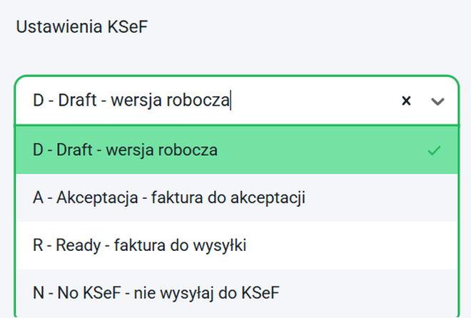 - N – No KSEF - Faktura nie powinna zostać wysłana do KSeF.